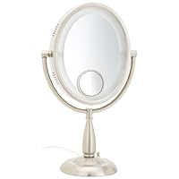 My old Sharper Image lighted mirror finally blew both of its lights and I cannot find the right bulbs for it. So I decided to purchase a new mirror and one that hopefully had a 10X magnification as my eyes aren't as strong as they once were! This mirror more than meets my needs. It has a lovely finish that fits right into my bathroom decor and the 15X insert is fantastic for finding and pulling out those pesky chin hairs as well as eyebrow plucking! I'm so happy I took the chance and ordered this mirror. I nearly didn't because of a review that the insert magnification was too strong for that individual. But it works just fine for me and the 10X is great for makeup applications without having my glasses or contacts on. I highly recommend this mirror as the lighting effect is spot on with the ability to change it to three different levels depending on your needs. This cost less than my old mirror but works so much better. A great find and buy!Review of Jerdon HL9510N 8-Inch Two-Sided Oval Halo Lighted Vanity Mirror